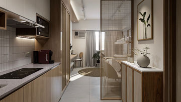 The design stye is focused on neutral tones reinforced by warmth of wooden textures evoke a serene sense of refined balance and ambiance; effortlessly combining functionality and minimalism that turn a stale space into something that is enlivening yet reposed.