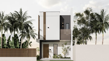It is a modern industrial architectural style. Proportion, and form were focused on this design. We used Concrete, perforated metal accent, wooden slats, and glass for this style.